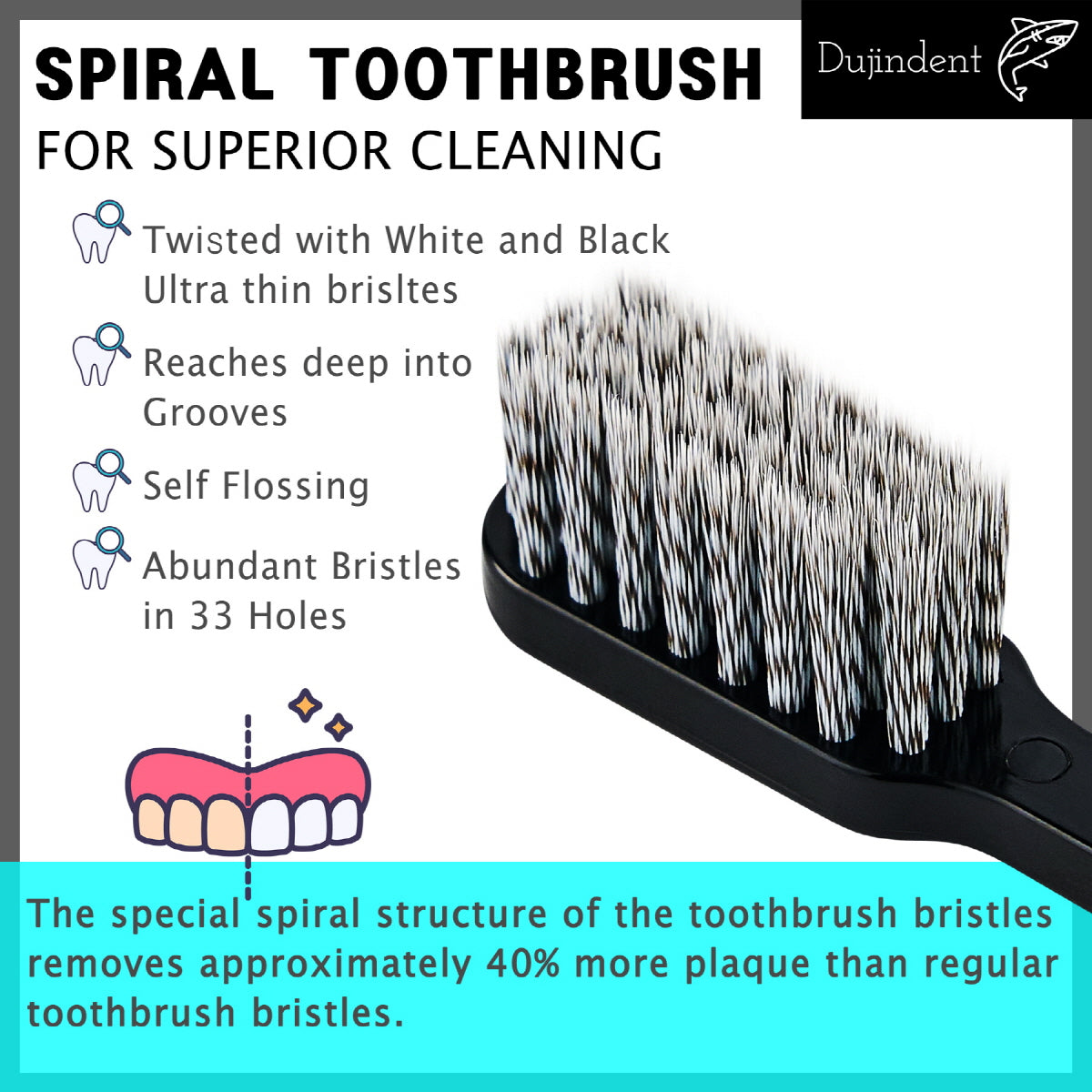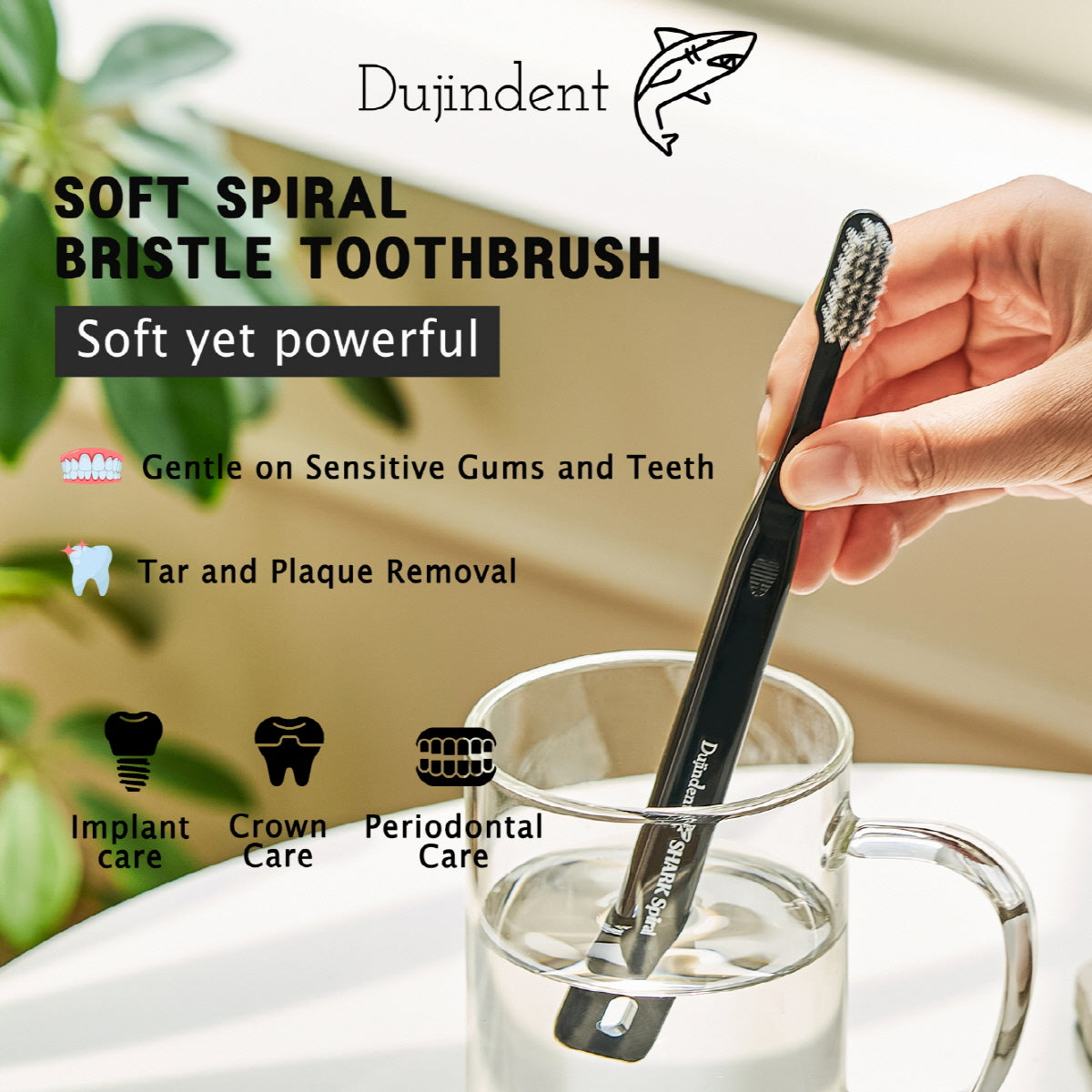 - Dujindent Toothbrushes SHARK SPIRAL. Made in Korea. Recommended by the Korean Society of Periodontology.